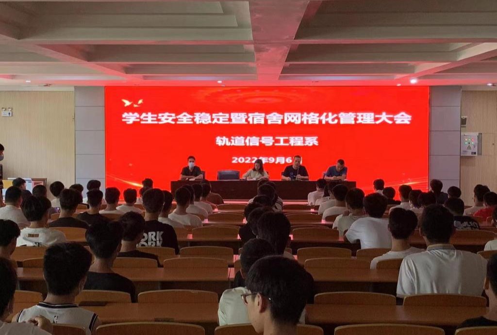 为进一步加强学生安全管理,增强学生安全防范意识,落实学生公寓网格化管理,营造安全文明和谐的宿舍环境,轨道信号工程系于9月6日下午分批次召开学生安全培训会,学管主任马瑞、宿舍总教官李常青、宿舍教官刘智文、2021级全体宿舍干部、宿舍长参会,会议由学管干事王继光主持。