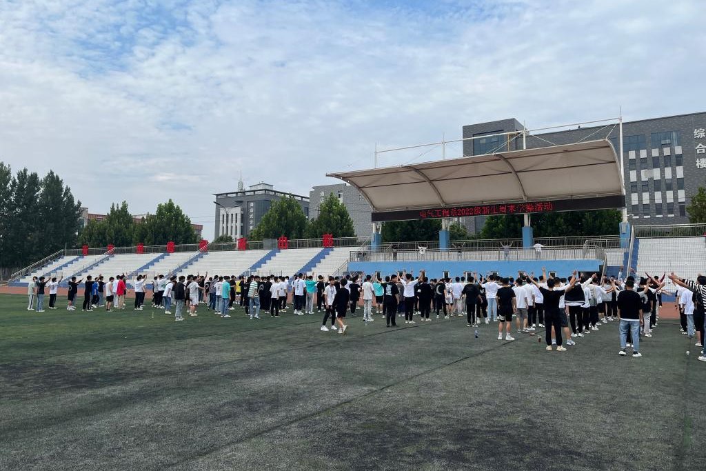 为帮助新生更快融入学校日常文体活动,提高学生早操做第九套广播操的质量,电气工程系团总支利用周末时间分批次组织开展了2022级新生周末学操活动。