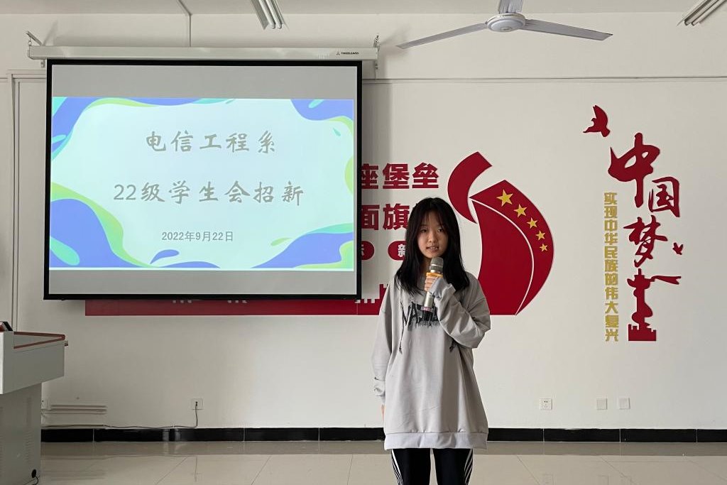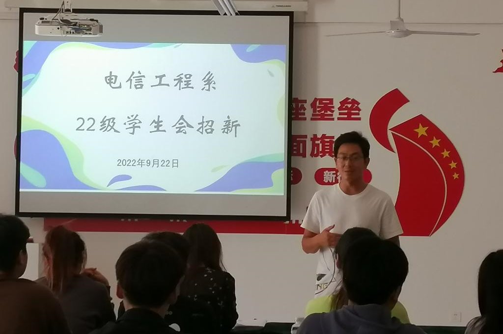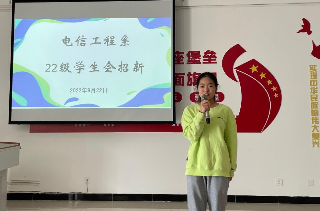 为精简学生干部队伍,落实网格化、精细化管理,根据我系实际情况,决定成立2022级学生会。9月22日,电信工程系在2号教学楼231室进行2022级学生会招新面试,学管主任陈志坚,2022级学生会主管老师席笑雪参加此次活动。活动由电信工程系大专学生会组织、学生会干部肖昊昊主持。