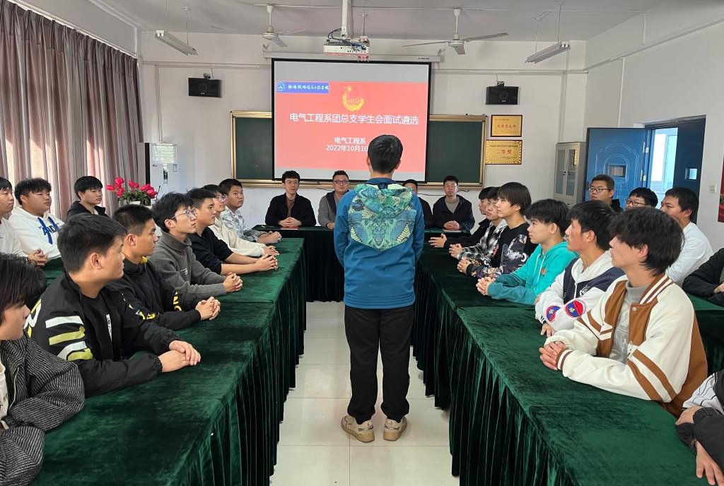 近日,为加强团学干部队伍建设,吸收新鲜血液,凝聚团队力量,踔厉奋发,赓续前行,电气工程系团总支根据团学组织各部门业务职责,以高校共青团改革实施方案的更高标准来严格要求和提升团学干部素养,分批次、分层次进行了多轮学生干部遴选面试工作,遴选面试评委由系内学管老师组成。