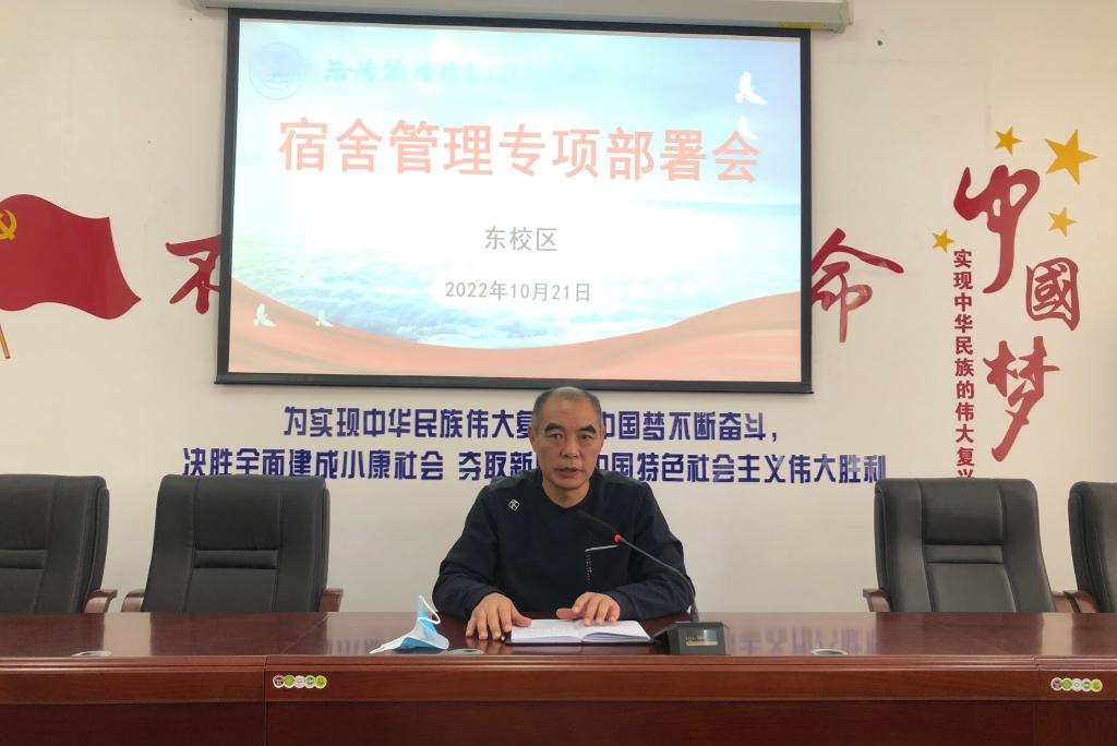 10月21日中午,东校区在会议室召开了宿舍管理专项工作部署会,全体教师参加,校党委委员、副校长李文光主持并作了专项部署。