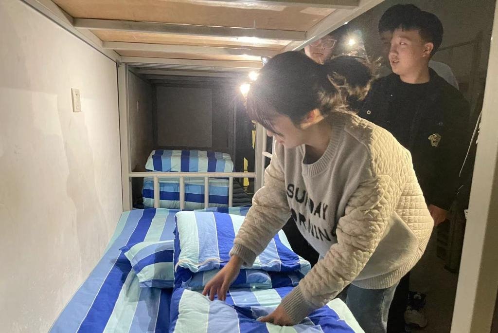 为全面推进“五育并举”的总体目标,践行我校劳动教育的工作方向,加大劳动实践行动力度,10月25日晚,信息工程系主任邱智铖、副主任臧嘉琦,系办干事化蕊、陈英堃深入学生宿舍,开展了一场别具一格的劳动教育活动——为学生现场演示如何叠好被子。