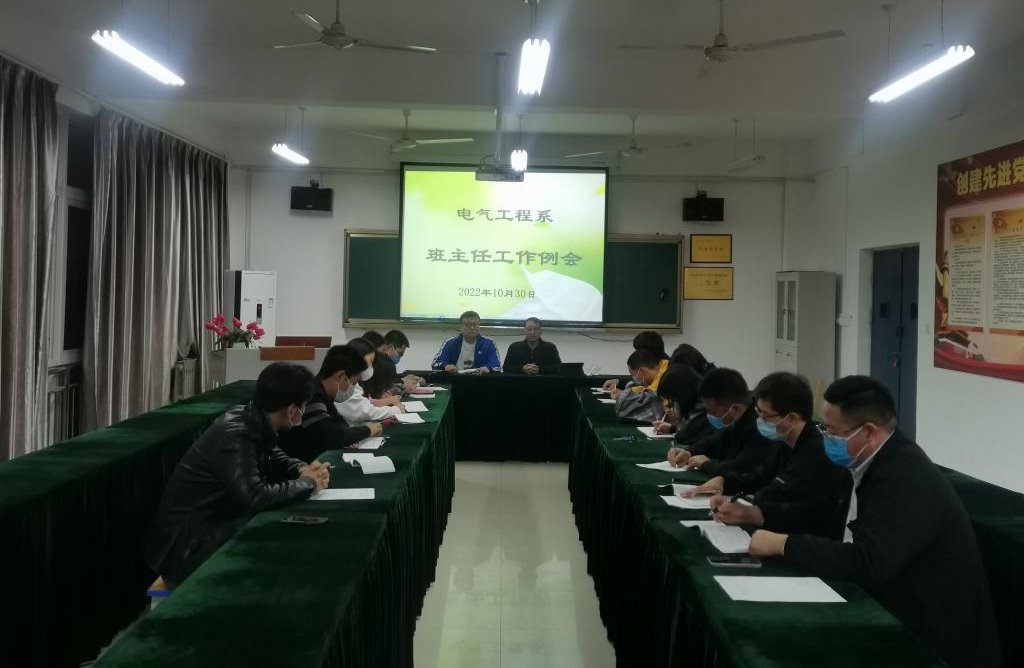 为积极响应学校关于疫情防控的工作要求,服务学生排解困难,电气工程系于10月30日下午,在1号教学楼338教室召开班主任工作会,全体班主任通过“线下+线上”的方式参与了会议。