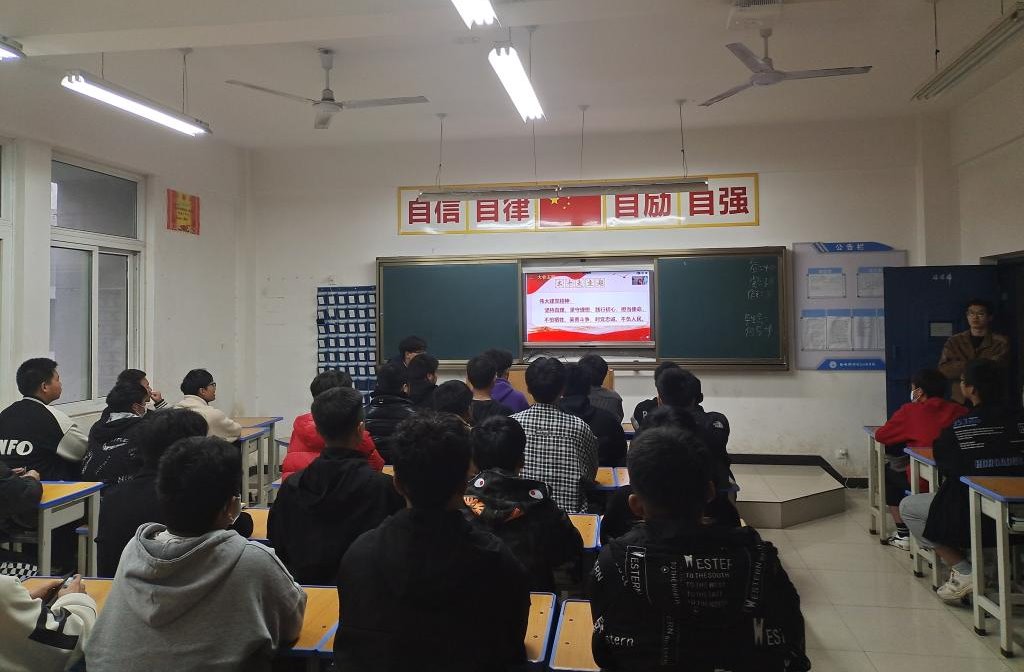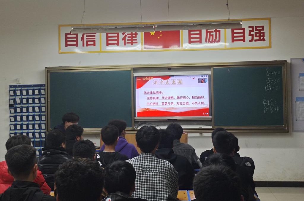 德育教研室主任余幸辉和电气工程系思政创新团队黄德茂、杜华两位老师以及相关班主任老师同时在线下走进班级组织同学们进行学习并对同学们进行答疑解惑。