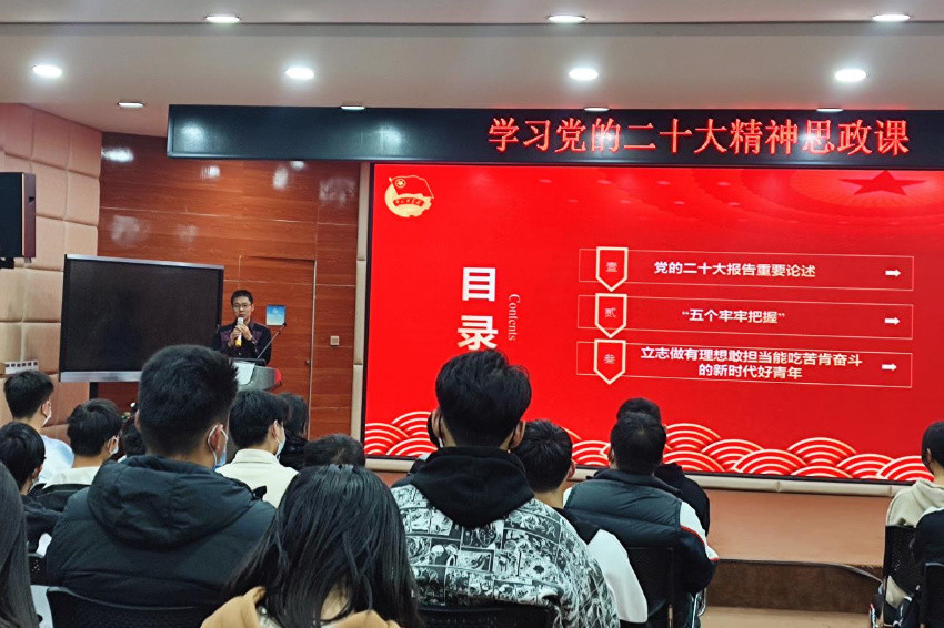 11月16日下午,电信工程系党支部书记、主任张波在智慧大讲堂为大专生讲授党的二十大精神专题思政课。