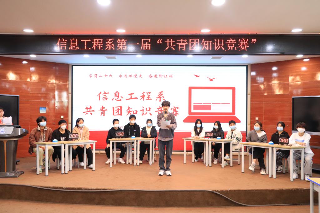 为深入学习贯彻习近平新时代中国特色社会主义思想,掀起学习党的二十大精神热潮,增强学生对党团史的了解,引导广大团员学生自觉践行共青团员的初心使命,坚定不移听党话、跟党走,11月17日,信息工程系开展了“学习二十大、永远跟党走、奋进新征程”共青团知识竞赛活动。