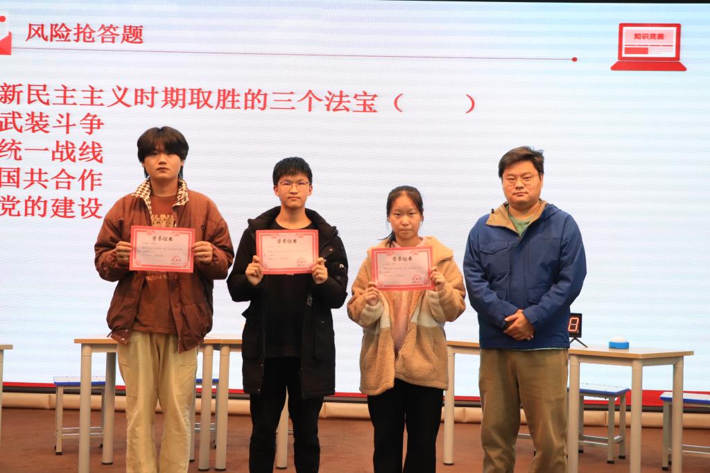 本次知识竞赛分为“必答题”、“抢答题”和“风险题”三个环节,共有四队选手参加竞赛,选手们在每个环节中都聚精会神,得分你追我赶。