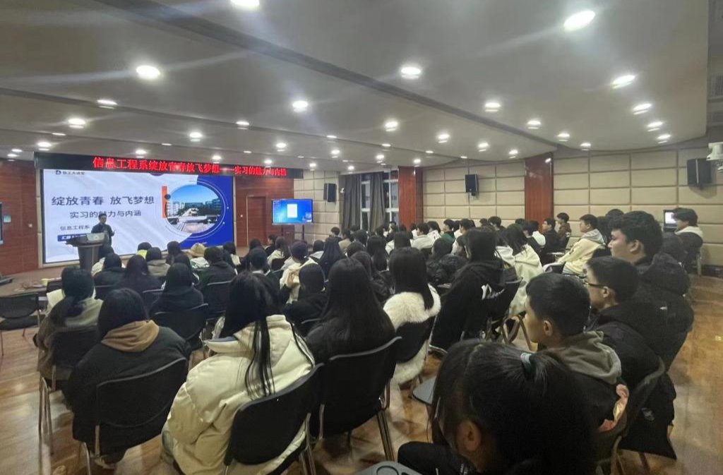 为确保2021级毕业生实习工作稳步推进,引导学生认识实习的目的和意义,信息工程系“五五四零一”活动之信工大讲坛于2月21日晚在智慧大讲堂举办。此次讲坛主题为“绽放青春,放飞梦想”,由信息工程系副主任郑波涛主讲,2021级、2022级全体学生聆听。