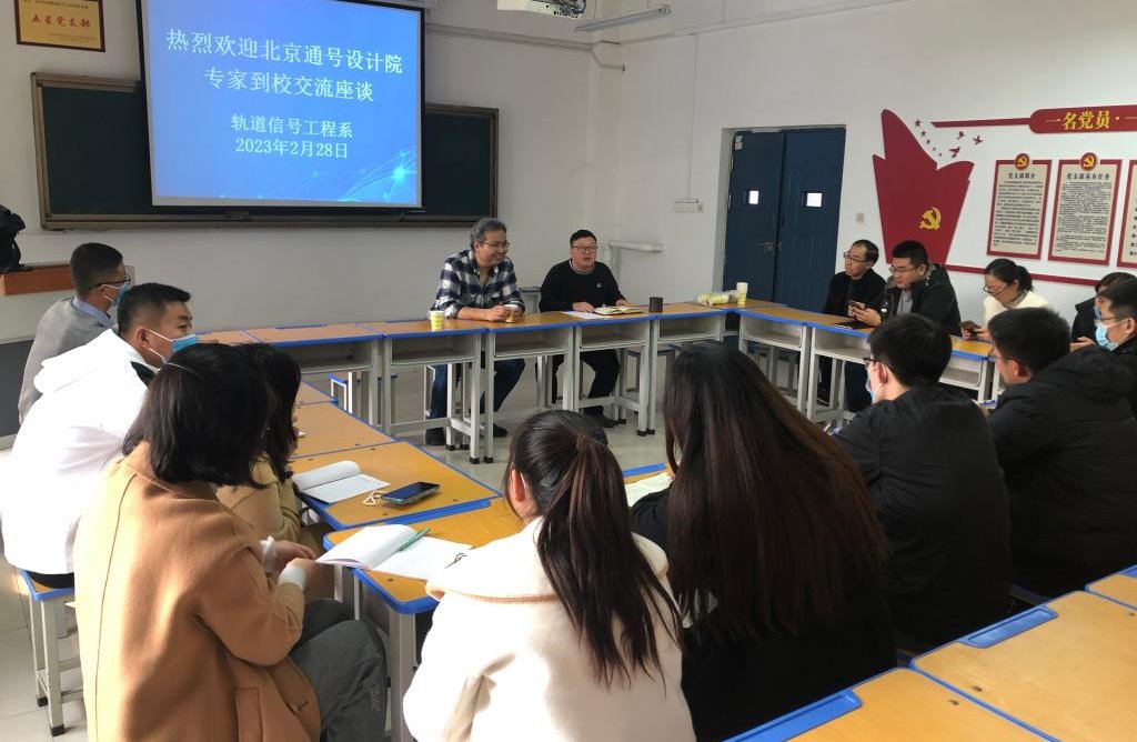 轨道信号工程系邀请中铁电气化局三公司、北京通号设计研究院专家到校招聘、宣讲与技术交流,轨道信号工程系全体教师参与。