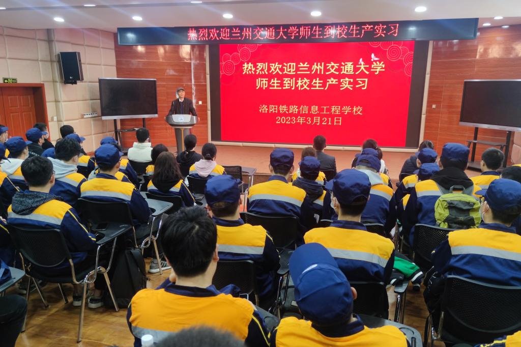 春风送爽,花开校园。3月21日,兰州交通大学武晓春教授带领指导教师及自动化与电气工程学院2019级轨道交通信号与控制专业本科学生到我校开展生产实习,学校在智慧大讲堂举行欢迎仪式。常务副校长王怀钦,轨道信号工程系主任张建平,以及负责本次实习培训的工程师参加仪式。仪式由系副主任李福建主持。