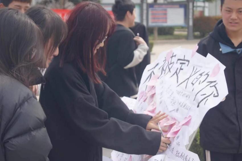 为了让同学们建立信心,勇敢做自己,3月22日,电信工程系高职学生会在学校厚德广场组织开展了“撕掉标签,拒绝被定义”活动。
