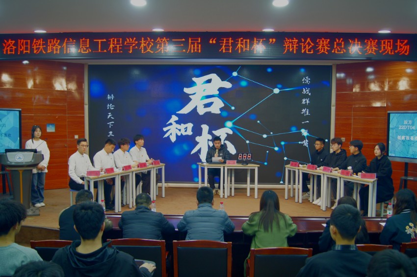 辩一题而有知,论纵横而明志。为丰富同学们的校园生活、提高语言表达能力和逻辑思维能力,3月23日晚,电信工程系在智慧大讲堂举办第三届“君和杯”大专辩论赛总决赛。担任此次辩论赛评委的是电信工程系学管主任陈志坚,公共基础部副主任刘晶光,电信工程系思政团队王岚,轨道信号工程系学管干事王希发,铁道信号教研室霍智敏,城市轨道信号教研室师京维。