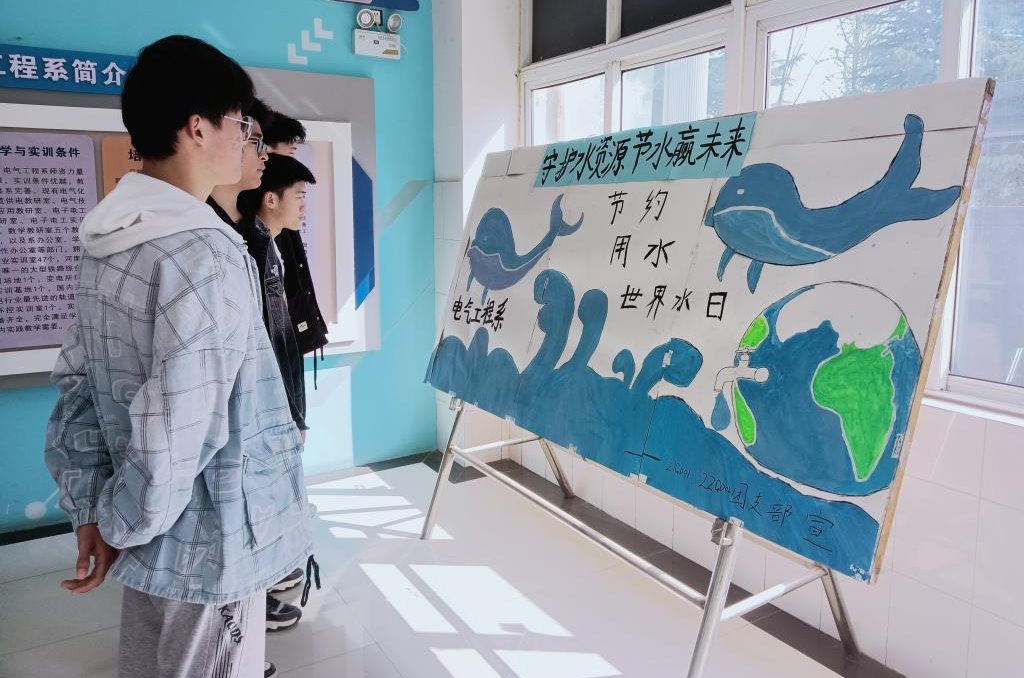 今年3月22日是第三十一届“世界水日”。为贯彻 “世界水日”和“中国水周”新发展理念,推进水资源集约安全利用,增强广大师生的节水意识,实现学校建设节约型校园的目标,3月20日-3月27日,电气工程系2021级供电01班和2022级供电02班联合在校内开展节约用水宣传教育活动。