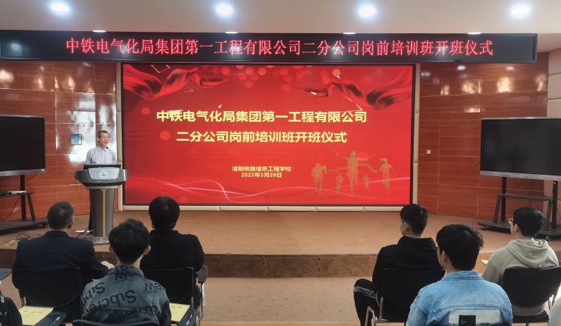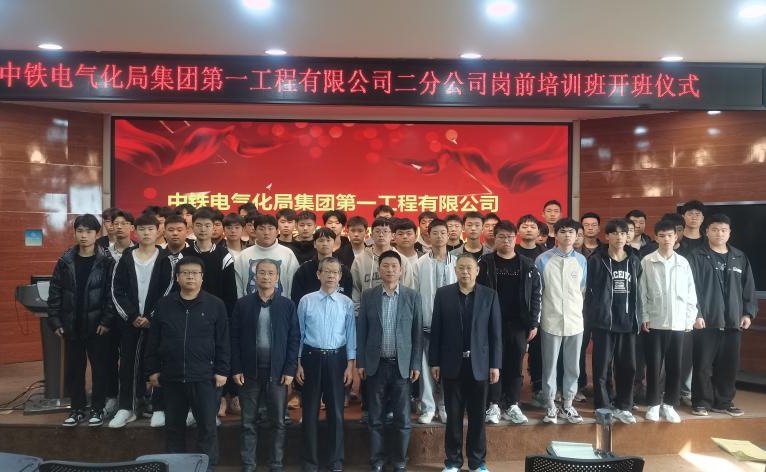3月29日上午,中铁电气化局集团第一工程公司第二分公司岗前训班开班仪式在我校智慧大讲堂举行。校企合作部副长寇斌、电信工程系副主任李军华、二分公司人力资源部部长李栓桩等和培训班47名学生参加。