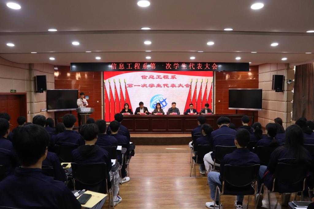 4月14日上午,信息工程系第一次学生代表大会在智慧大讲堂隆重召开。信息工程系主任邱智铖,副主任臧嘉琦、郑波涛及系办老师出席会议,全系近80名学生代表及学生干部参加会议。