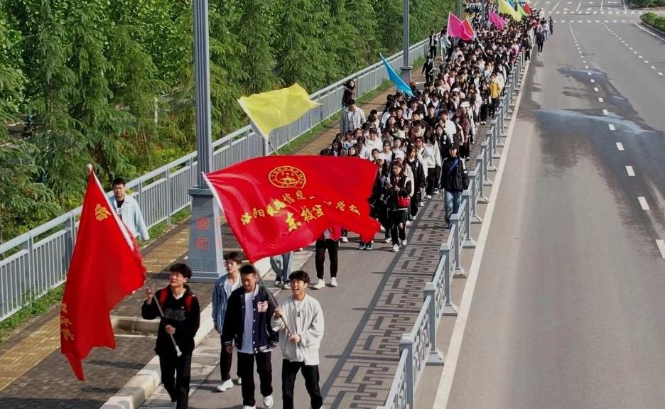 早上8点,学生队伍在老师的组织下列队出发,路上的队伍犹如夏绿松石龙形器,也如神州大地上的火车轨道,浩浩荡荡,蔚为大观。