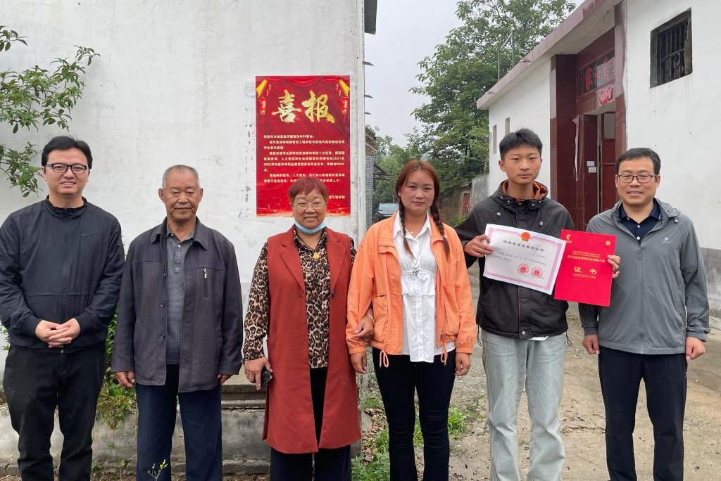 为充分展现优秀中职学生风采,积极发挥“奖助”育人激励导向作用,感谢优秀学子父母的悉心栽培,有效搭建家校联动育人平台,助力学校2023年秋季招生。5月27日在系主任张建平的带领下,轨道信号工程系赴南阳市方城县赵河镇渔池村向2021-2022学年中职国家奖学金、金砖国家技能大赛获奖者郝明权同学家送去喜报。