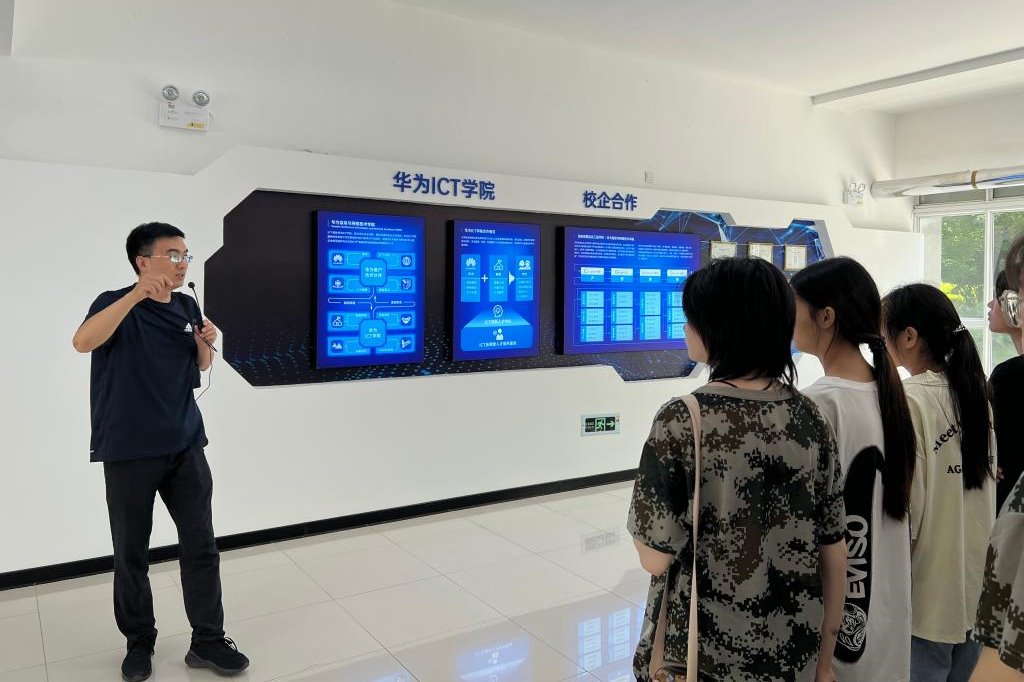 参观期间,老师们介绍了包括华为大数据产业学院、视觉传达实训室、京东实训室在内的计算机类、电子商务类专业实训室的建设成果及功能用途,并对学生的成才成长、职业规划进行引导。学生们认真聆听,表现出极强的好奇心和兴趣,也提出了自己的困惑与想法,期间师生进行了探讨交流,老师们体贴入微地给予解答,现场学习氛围愈发浓厚。