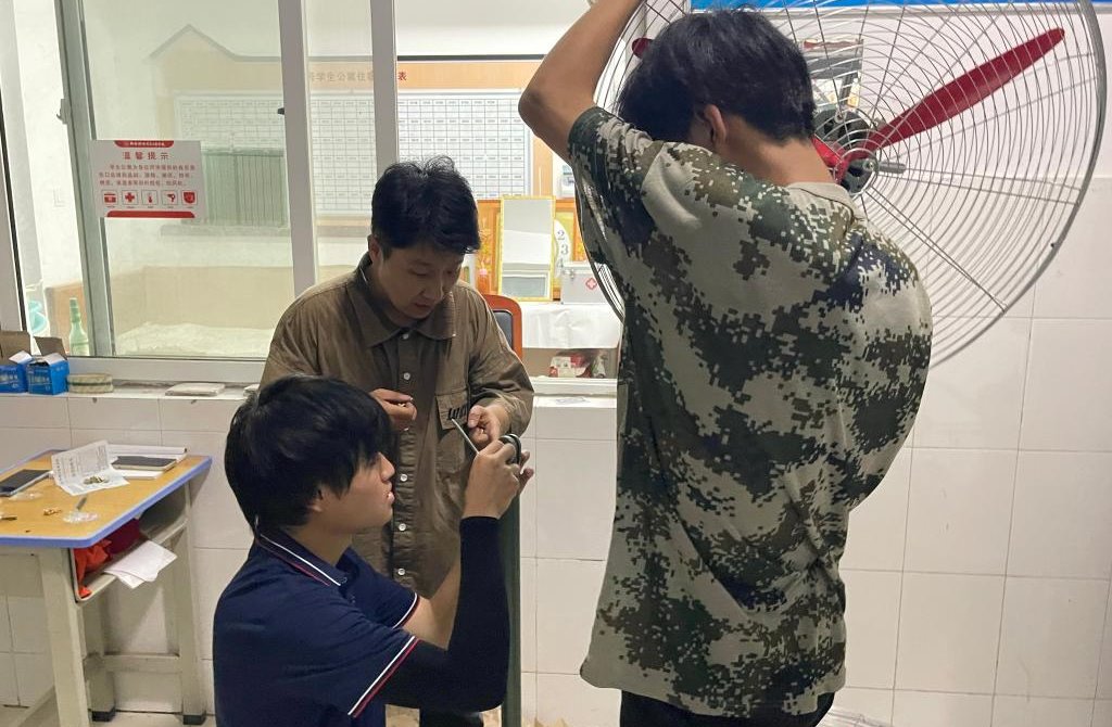 8月23日下午,信息工程系批量采购了工业风扇,由系办老师化蕊带领学生加急组装,统一置于本系学生宿舍楼层两侧,并由全体班主任们对学生作出安全使用风扇的温馨提示;制定相关细则开放实训楼、教学楼内相应的实训室及机房,供班级上课使用,期间由班主任全程跟班,确保良好的教学秩序及用电安全。