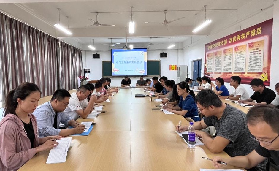为进一步做好新学期全系学生教育工作,8月31日,电气工程系于1号教学楼338室举行了新学期班主任工作培训会议,全系班主任老师参加了会议。