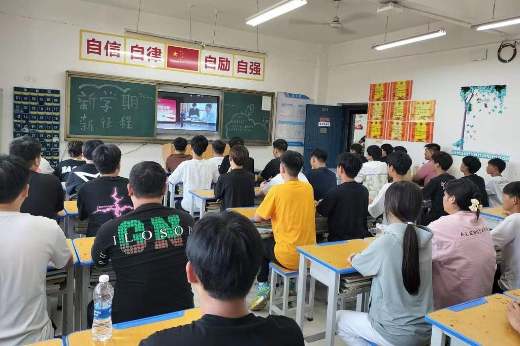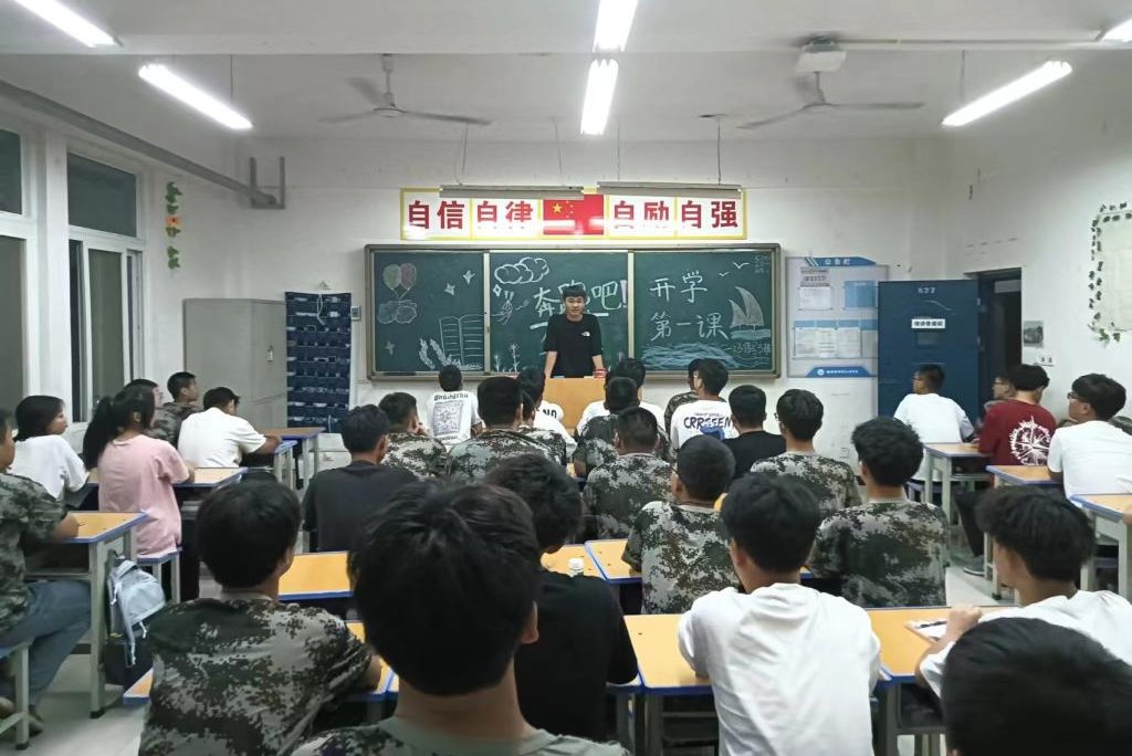 在“新学期、新展望”主题教育暨升旗仪式上,系主任张建平在国旗下讲话,勉励全系同学在新的起点下,胸怀“工匠”大志,坚定职业信心;心存感恩之心,珍惜春年华;脚踏实地,砥砺前行,以昂扬奋斗的姿态书写人生新篇章。新生代表张尤腾同学发言时说:“我们将刻苦学习,认真学习专业知识;苦练本领,精进打磨职业技能,做有担当、有涵养、有本领的新时代好青年。”