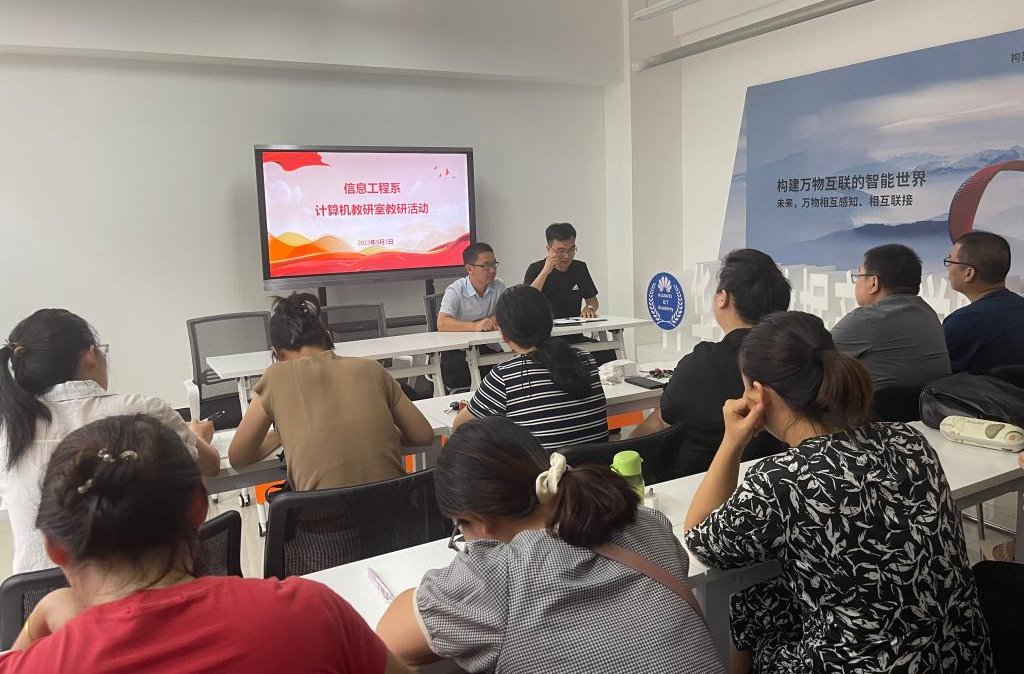 为了确保新学期教学工作有序进行,按照学校教学工作要求,传达学校教学工作会议精神。近日,信息工程系计算机教研室和电商教研室组织开展教研活动。会议由计算机教研室主任张智辉、电商教研室主任王宝刚主持,教学副主任郑波涛以及全体教师参与本次活动。