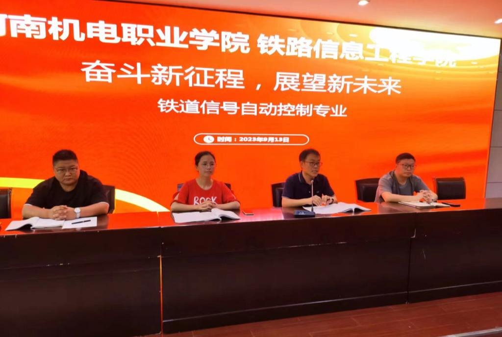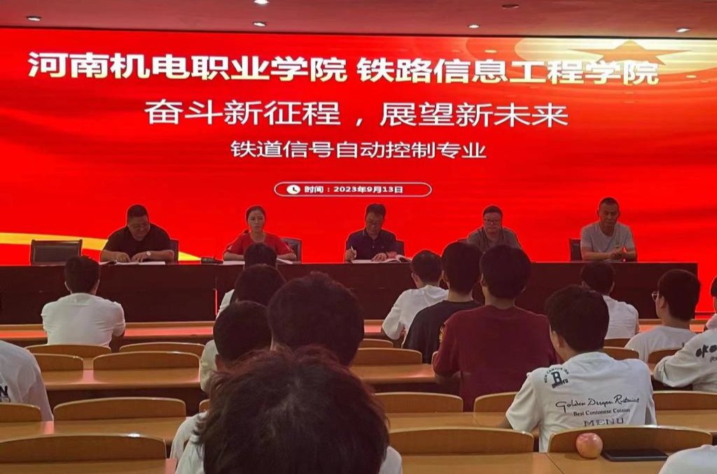 9月14日,河南机电学院铁路信息工程学院轨道信号工程系在我校二号实训楼思政大讲堂开展2023级大专新生开学第一课,轨道信号工程系党支部书记、系主任张建平、学生管理主任马瑞、教学主任李福建、系学管老师参加了此次大会。