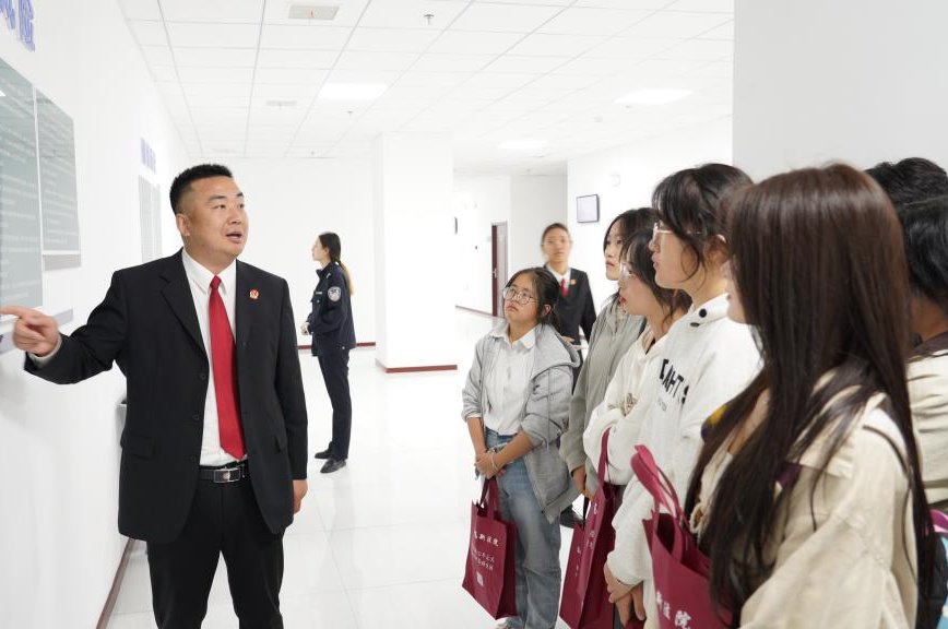 进入法院,同学们被法院浓厚的法治氛围所吸引,在工作人员的带领下,先后参观了诉讼服务中心、法治文化长廊、综合审判庭等。在诉讼服务大厅同学们聆听立案服务及智能化立案设施介绍,观看诉讼自助服务终端等智能设施的操作演示,体验了科技给诉讼服务带来的新感受,了解了诉讼服务中心职能和司法便民利民举措。在审判法庭,法官向大家讲解了审判法庭的构成,重点介绍了法官、陪审员、书记员、法警、公诉人及辩护人各自承担的职责。同学们聚精会神观摩,虚心请教问题,用心感受法律的庄严和权威。