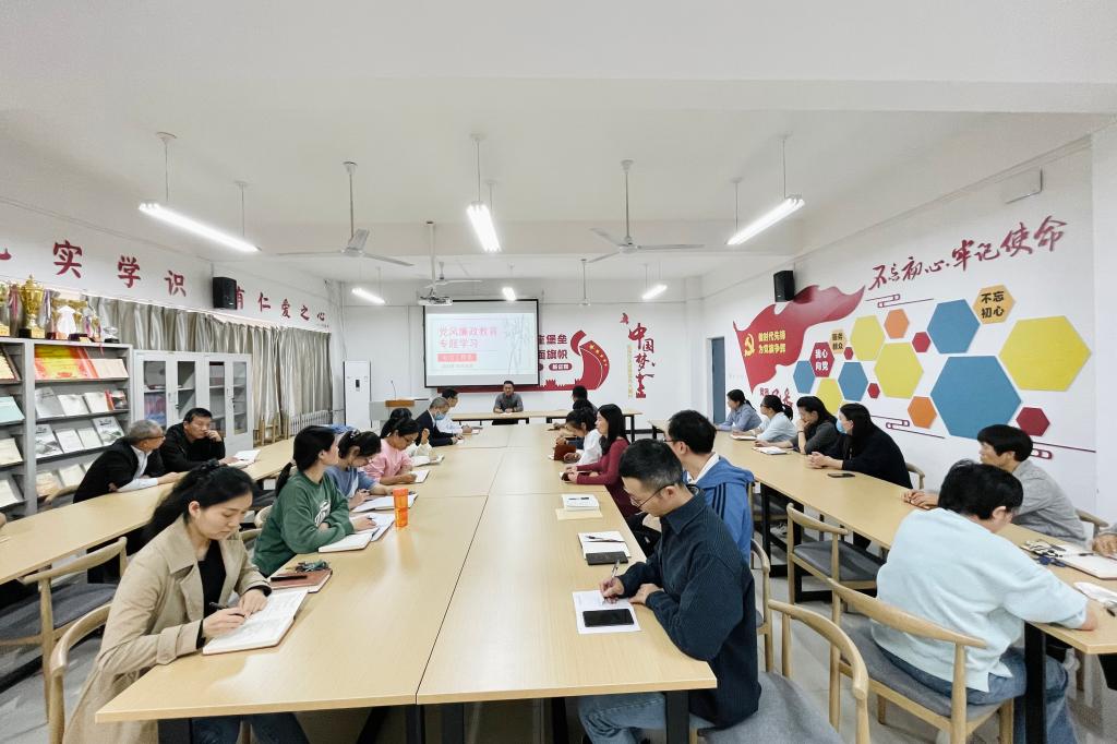 于庆斌作总结发言。他强调,一是加强师德师风建设,坚持加强思想政治引领,坚持师德师风第一标准,坚持立规矩明底线,不断提升教师队伍整体素质;二是坚持党务政务公开,在处理学生事务上公平公正公开,及时妥当处置校园舆情,规范处理学校各项事务。在创高发展的关键时期,他要求全体党员应立足自身工作岗位,恪尽职守,筑牢思想防线,守住廉洁底线,以党风廉政建设为抓手,保证各项工作平稳推进。