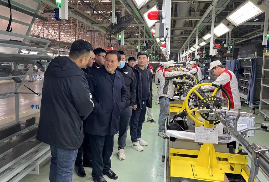 陈虎一行在长城汽车人力资源部部长石中强等领导的陪同下,深入一线实地考察了学生们的岗位环境、工作状态及生活情况,学生们见到“家人”的喜悦之情溢于言表。石中强表示“目前在厂区实训学习的几家学校学生相比较,汽车学院学生的状态非常好,在岗位学习非常认真,长城汽车从上到下,对我校学生的素养非常满意,希望继续和我校保持深度合作,同时希望学生毕业后到长城汽车工作,企业将提供优越的工作生活环境。”