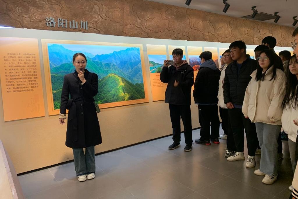 在讲解员的带领讲解下,首先参观了“走进洛阳”和“千年帝都”展厅,在这两个展厅里,同学们不仅看到了新石器时代的陶器、夏商周时期的青铜礼器和形态各异的唐三彩,还看到了张衡发明的候风地动仪和蔡伦造纸术微缩景观复原。这些文化瑰宝再现了千年古都特殊的历史地位,让同学们对洛阳的历史有了更深刻的认识,充分感受河洛文明和洛阳千年帝都的魅力。在“世纪曙光”展厅,通过展板上珍贵的历史照片,同学们深深感受到了艰苦岁月里革命先烈不屈不挠的斗志,对“不忘初心,牢记使命”有了更深刻的理解。