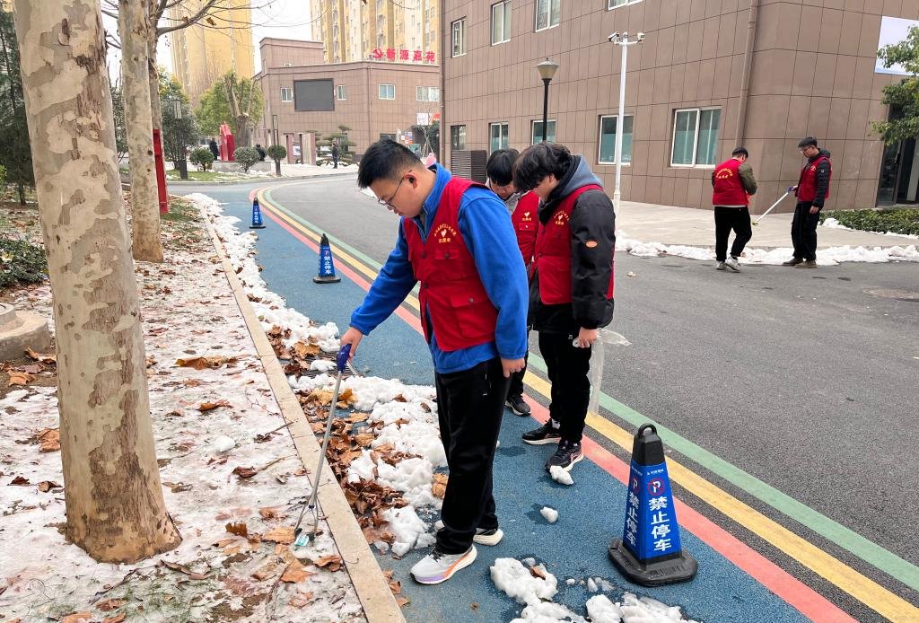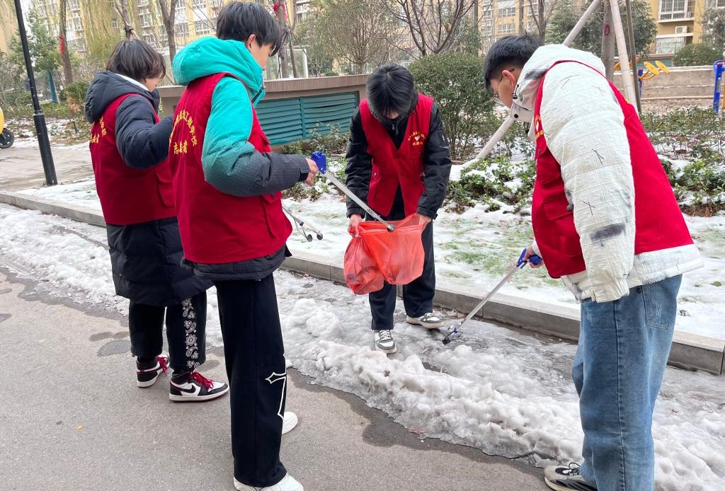 在活动过程中,3118云顶集团官网师生志愿者们身穿红马甲,忙碌地穿梭在社区的各个角落,将“洛铁红”的温暖传递给每一位居民。每个人参与其中,他们对道路积雪及时清理,消除安全隐患;对社区的白色垃圾、烟头等进行集中清扫;对卫生死角逐一进行清洁归整。在大家共同努力下,不仅将社区环境变得整洁有序,还增强了居民的幸福指数。