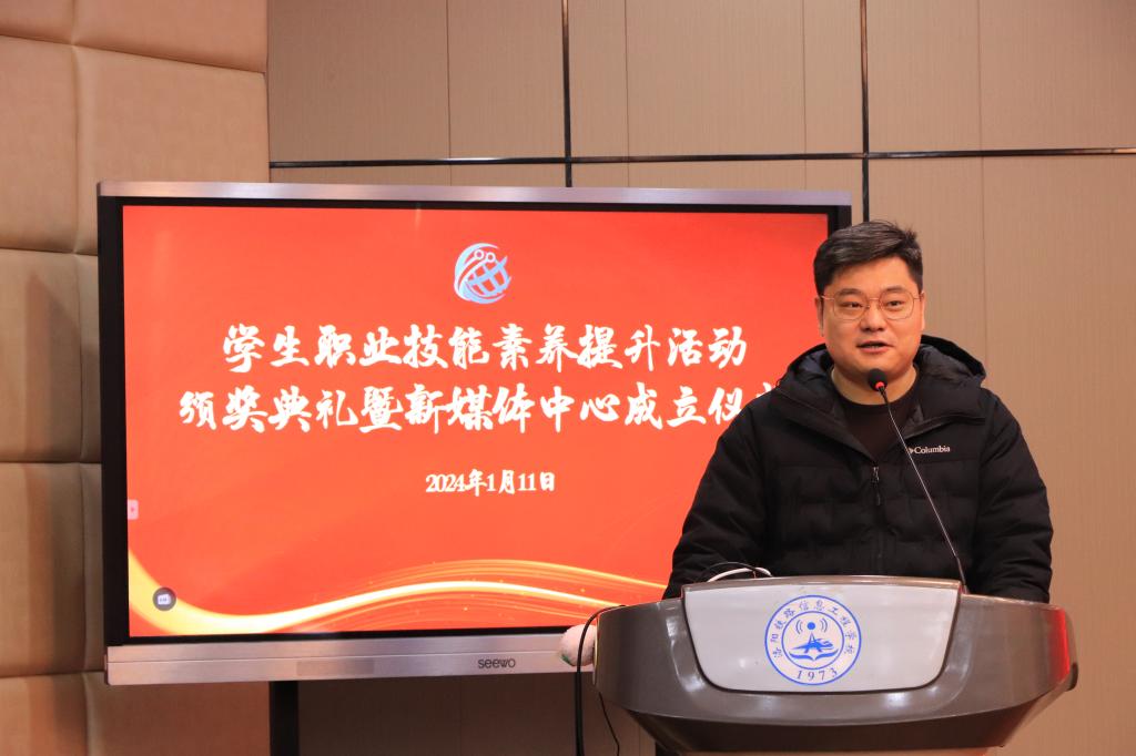 1月11日,信息工程系在智慧大讲堂举行学生职业技能素养提升活动颁奖典礼暨新媒体中心成立仪式。信息工程系主任邱智铖、部分校企合作企业领导及获奖学生参加会议。旨在通过大赛选拔人才,加强系部新媒体宣传工作力度,提高学生人文素养和职业技能。会议由信息工程系副主任臧嘉琦主持。