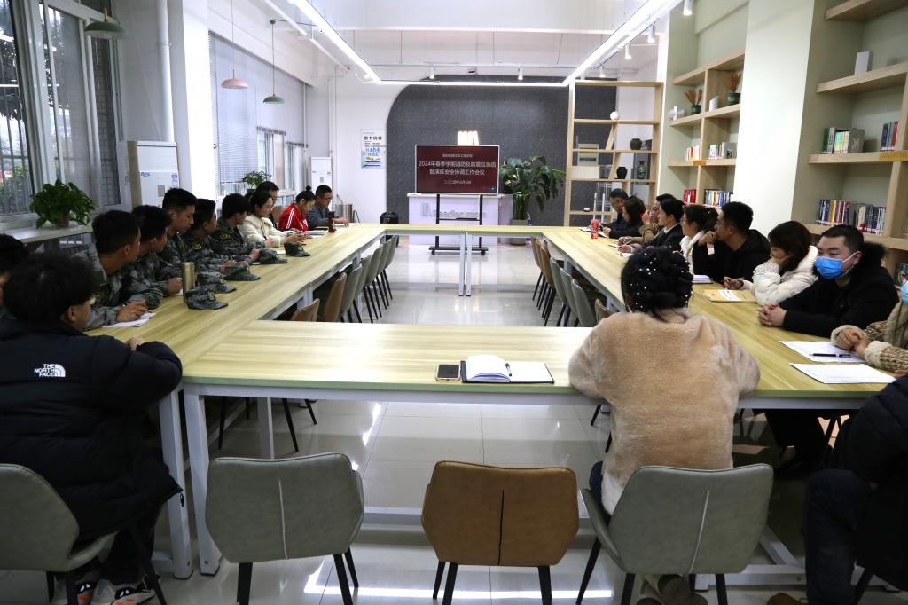 为加强学校安全管理工作,提高全校师生消防安全意识以及消防、地震应急疏散能力,3月5日下午,我校在图书信息楼一楼诗与远方阅览室召开了2024春季学期消防及防震应急疏散演练安全协调工作会议,副校长尹亚波、学工部部长李臻、四系学管主任和团总支书记、安全中心工作人员、校内各部门安全员和全体思政教官参加了会议,学工部副部长肖敏主持了此次会议。