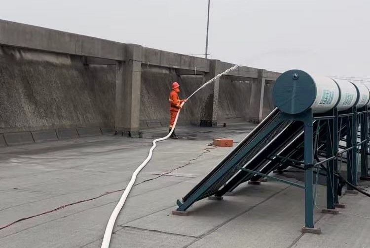 当天早上,学工部安全中心还在图书信息楼楼顶按消防队要求进行了消防水箱水压测试和演练。