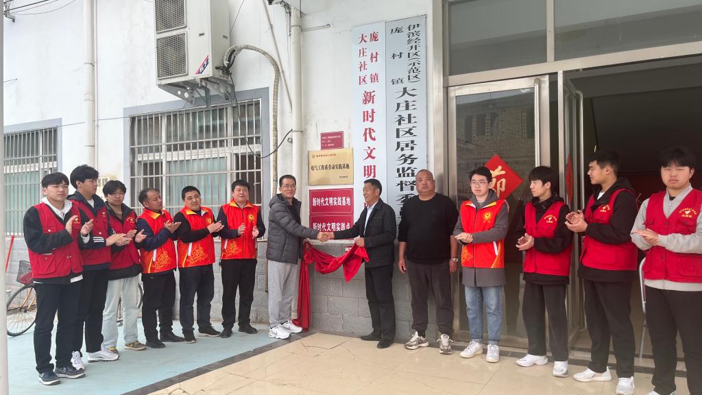 3月13日下午,电气工程系党支部在大庄社区党群服务中心举行“电气工程系劳动实践基地”揭牌仪式。系党支部书记、主任段云冬,党员教师及学生代表,大庄社区党支部书记周电奎出席了本次仪式。仪式由系副书记姚建华主持。