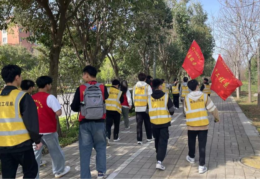 3月29日上午,在电信工程系党支部、团总支的部署下,王潇倩、牛广峰两位思政和实践老师带领39名我校现代学徒制班通信专业学生徒步前往中央公园开展了志愿清扫、整理共享单车和拉练活动。