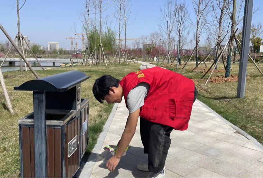 在欢歌笑语的行进中,同学们一边欣赏着沿途的美景,一边对吉庆路和光武大道上的共享单车进行了有序摆放,大家到达中央公园后,在老师的带领下,义务清扫沿线道路白色垃圾;河边的生活垃圾,同学们纷纷拿着扫帚、垃圾袋等清洁工具进行有序打扫。