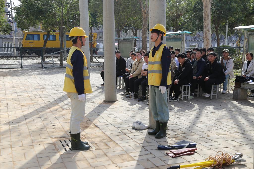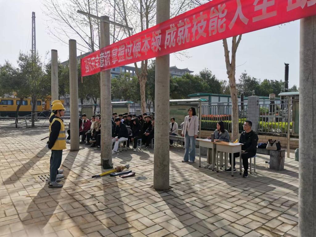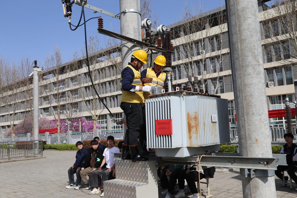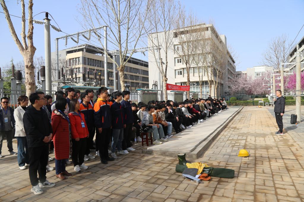 3月29日上午,电气工程系在电力线路实训场地,开展了以“讲安全、比技能、促发展”为主题的电力、变电技术大比武活动。2022级所有供电类专业40余名学生代表参加比赛,全体师生到场观看学习。