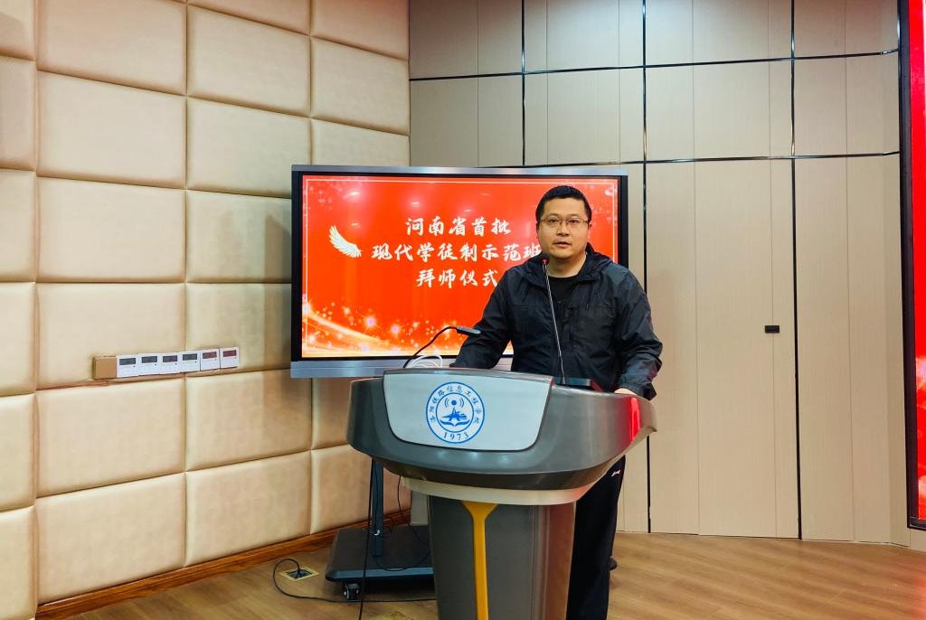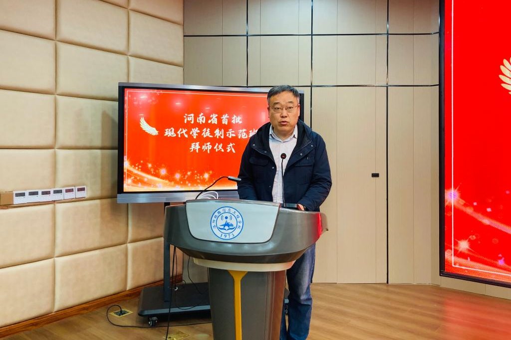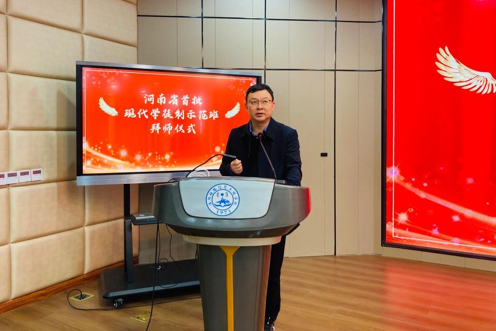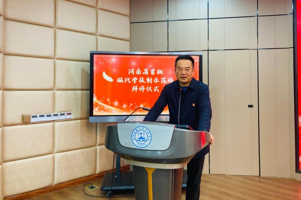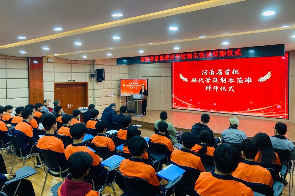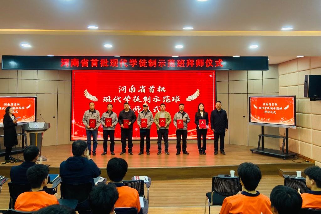 近日,电信工程系在智慧大讲堂隆重举行河南省首批现代学徒制示范班拜师仪式。校党委副书记、副校长于庆斌,副校长尹亚波,副校长李力厚,洛阳西瞾建筑工程有限公司总经理包照明,洛阳正坤电气工程有限公司总经理赵延坤等相关人员出席拜师仪式。拜师仪式由电信工程系主任李琼主持。