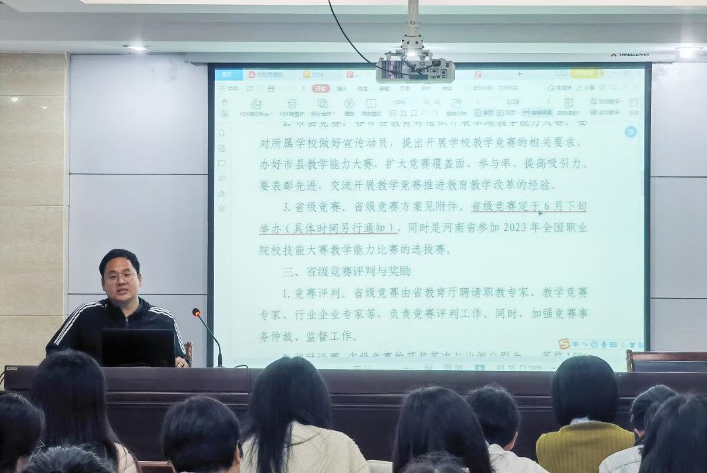 本次会议的召开,不仅为不同专业的教师搭建了相互学习、相互提高的交流平台,也使各参赛团队对比赛有了进一步的了解,明确了参赛方向和目标。下一步,学校将全力做好教学能力大赛的后勤保障和培训服务工作,为各位参赛老师创造良好的环境和条件,积极助力各参赛团队在本年度的省赛、国赛中再获突破、再创佳绩!