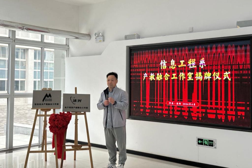 史亚非在讲话中对工作室的成立表示祝贺,并对工作室的未来发展寄予厚望。他肯定了工作室成员们的努力付出,认为这两个工作室的建立不仅是信息工程系人才培养工作的一大成就,也是产教融合的有力体现。史亚非表示,将全力支持工作室的发展,为其提供更好的发展环境和资源保障,希望工作室能够成为教学科研的重要平台,为社会输送更多的人才。