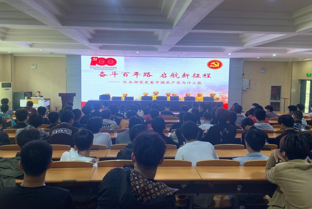 退休职工,校关工委秘书长郭建丽为全体学生干部讲授了一节主题为《百年奋斗路,起航新征程》的思政教育课。郭老师从奋斗史、为民史、创新史、精神史和经验史这五个部分向参加讲座的200余名学生干部生动诠释了中国共产党的百年党史和奋进历程。通过这次讲座,学生们一致表示受益匪浅,也激励了学生们要树立远大理想,努力学习,将来成为一个对祖国、对社会有用的栋梁之才。