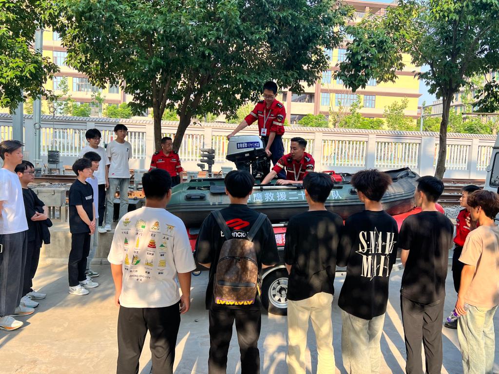 在救援队辅导员的带领下,师生一起到校园里参观了救援队的营救设备,聆听了设备背后的惊险感人故事。