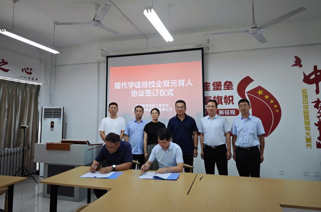 近日,电信工程系与洛阳轨道物业管理有限公司在系会议室举办了“校企双元育人”座谈会,并成功签订了《现代学徒班校企双元育人协议书》。校党委副书记、副校长于庆斌,副校长尹亚波,校企合作与培训部部长寇斌,电信工程系主任李琼、教学主任李军华,以及洛阳轨道物业管理有限公司党委书记、总经理任继乐,副总经理刘晓磊,项目管理部经理史志鹏,综合管理部高级业务经理张亚东出席了此次活动。