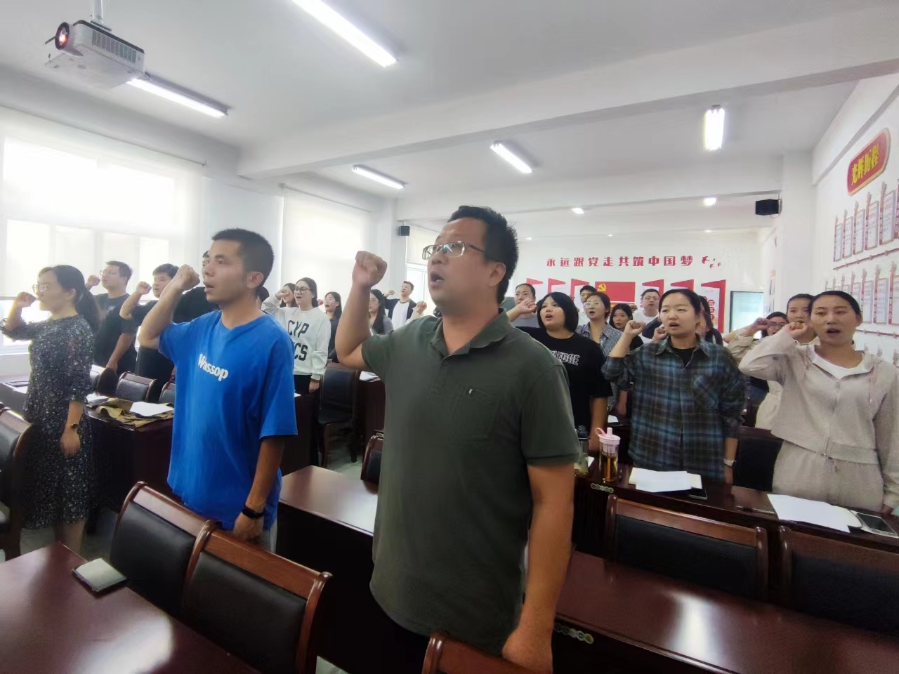 随后,全体教师庄严宣誓,重温人民教师誓词。