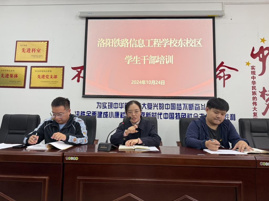 为进一步提升东校区学生干部的工作能力与综合素质,加强学管队伍建设,着力有效提升学生干部组织力、引领力和服务力,10月24日下午,由东校区学生管理负责人张静、学管人员高宇航和高洪昌三位老师主讲,全体学生干部和工作人员共计80人参与培训。本次培训涵盖了学生干部的职责、担当与定位,对待学生工作的心态等方面,为所有骨干力量提供了全方位的指导和帮助。