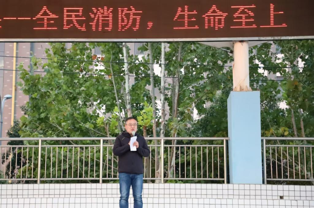 11月5日,我校在操场举行“全民消防,生命至上”国旗下的思政课教育活动,全体班主任及在校学生参加,校党委委员副校长尹亚波出席活动并讲话。