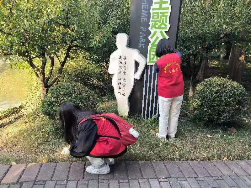 下午到达植物园,经过简短的安全提示和任务分配后,同学们以四人为一组,协助清理园内残留的垃圾,主动擦拭休闲座椅、路边指示牌,受到园区工作人员的认可。