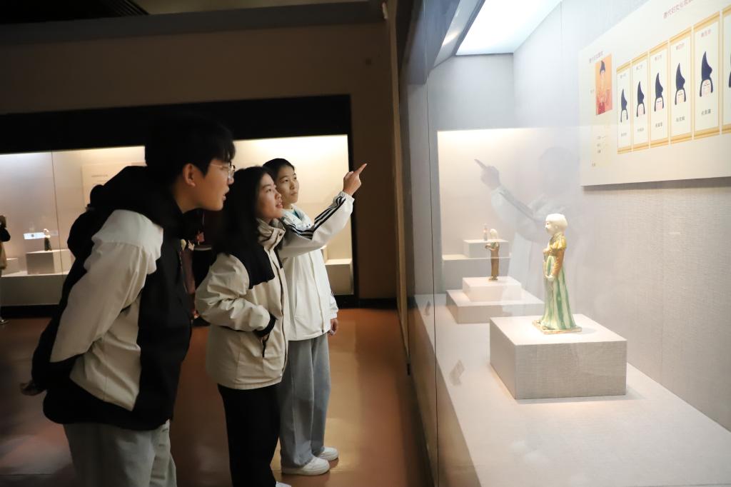 在博物馆内,同学们三五个人自行组队参观,从夏商周的青铜器,到汉唐的陶俑壁画;从精美的瓷器玉器,到珍贵的书法绘画,同学们都细致了解。特别是在馆内的文创邮局,同学们精挑细选明信片,并盖上邮戳将其寄出,感受不同通讯方式的魅力。